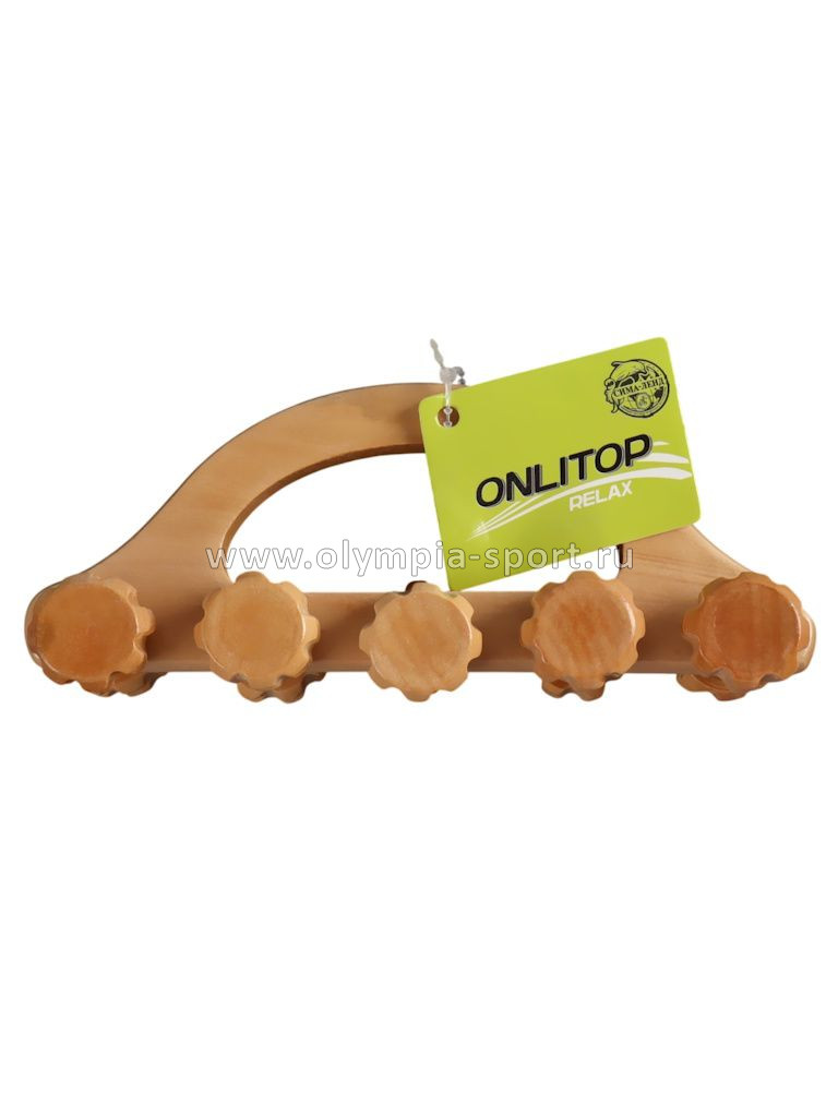 Массажёр деревянный гусеница с ручкой (10 колес, 18*5,5*8см) OT