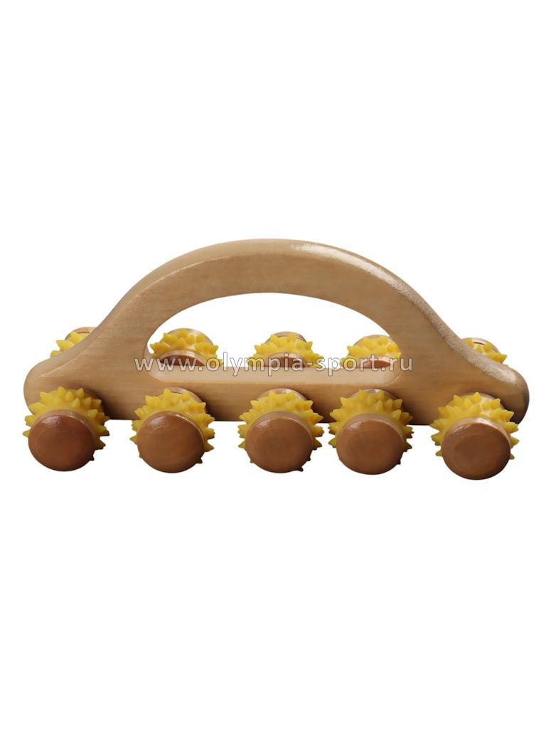 Массажёр деревянный гусеница с ручкой пластик (10 колес, 18*6*7см) OT